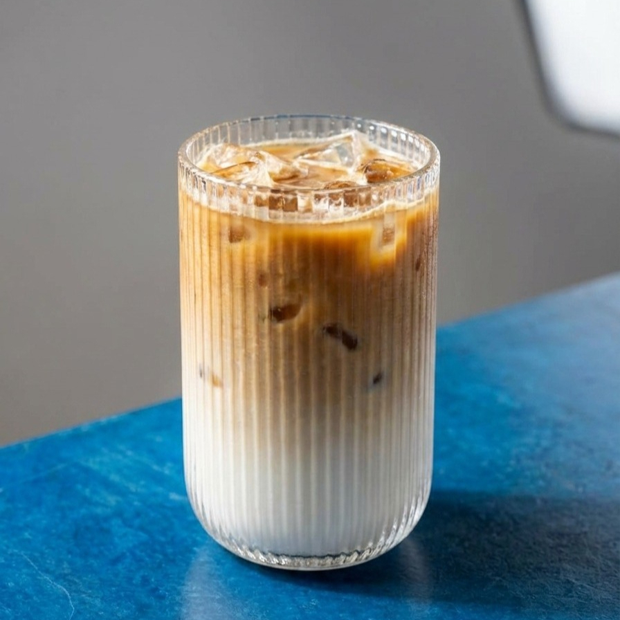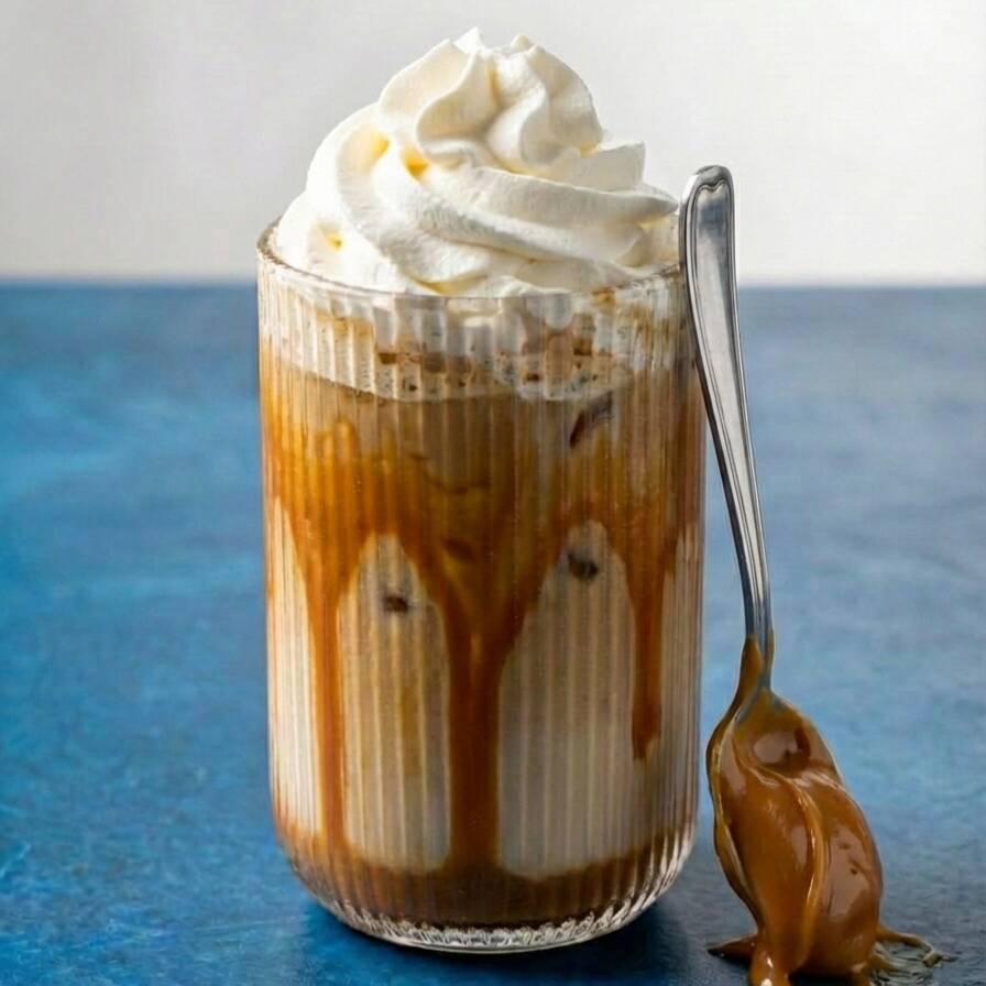 Dose de espresso, leite espumado e sorvete premium de doce de leite