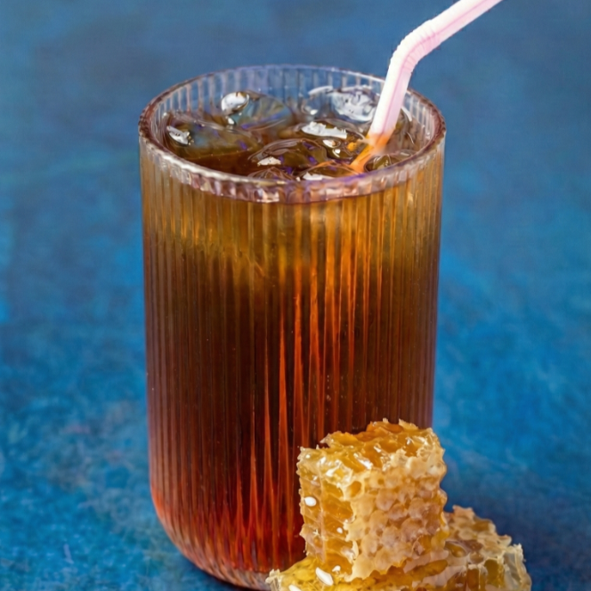 Processo de infusão a frio por 24hrs de café servido com mel e limão