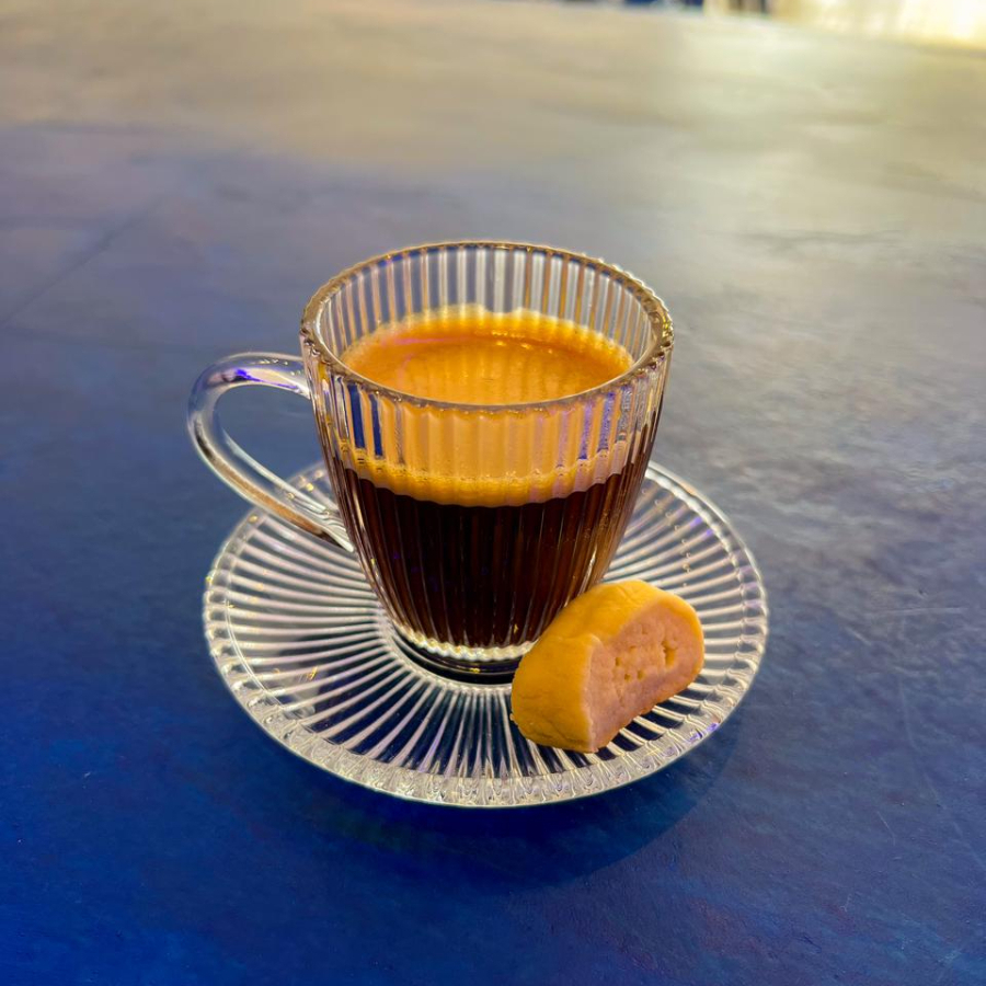 Espresso, leite espumado, e caramelo artesanal da Dope