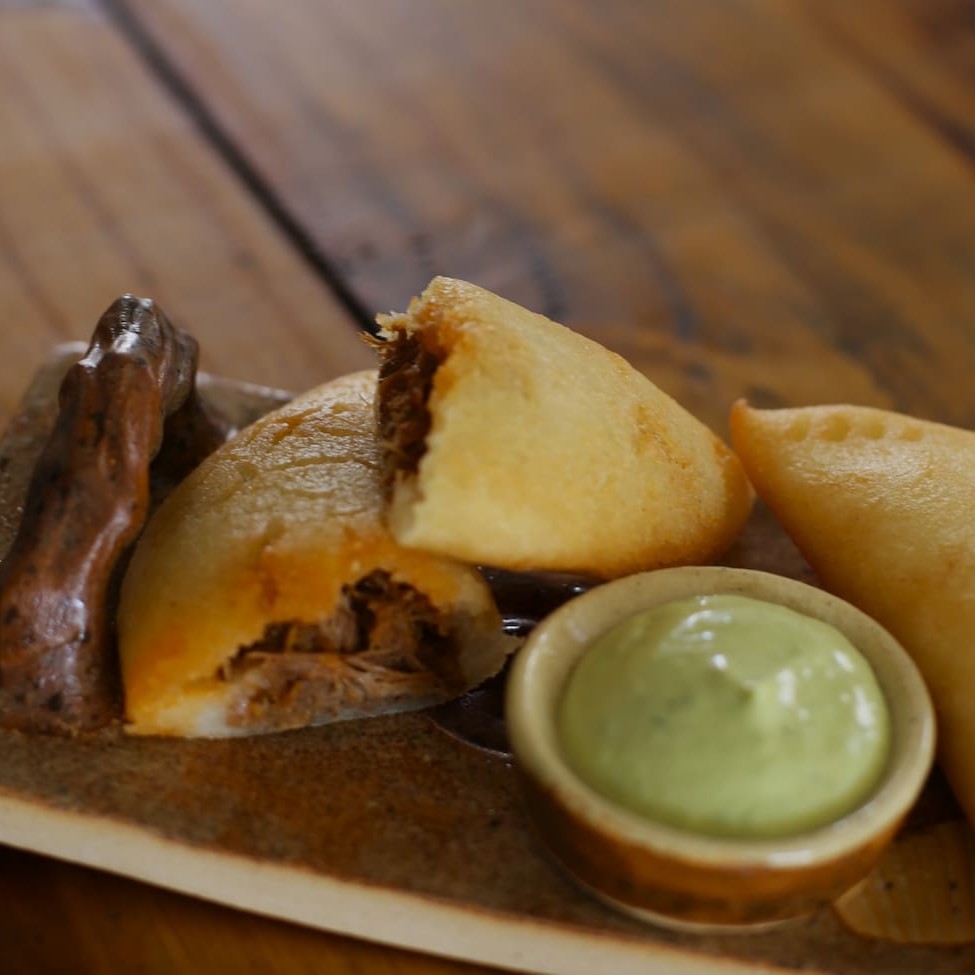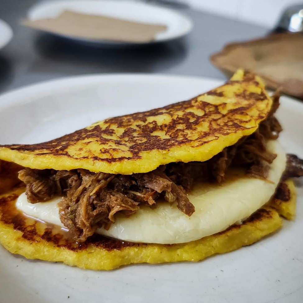 Símbolo da gastronomia venezuelana e consumida a qualquer hora do Dia, é apreciada em todo o país e em todos os lugares onde a diáspora venezuelana chegou. Consiste numa espécie de panqueca de uma textura macia e levemente adocicada, feita com milho moído ou processado e que logo passa numa chapa, o que a torna única em comparação com outras similares. Tradicionalmente, a cachapa é servida e untada com manteiga ou nata para realçar seu sabor e originalmente é recheada com um queijo branco fresco própio da nossa terra. Mas nós a serviremos com um queijo produzido especialmente pelo chef da casa que recria a essência dessa tradição. o combo inclui uma cachapa com queijo, uma bebida e o brownie da casa.