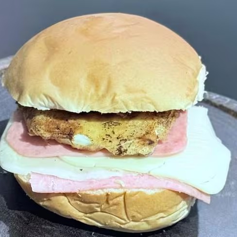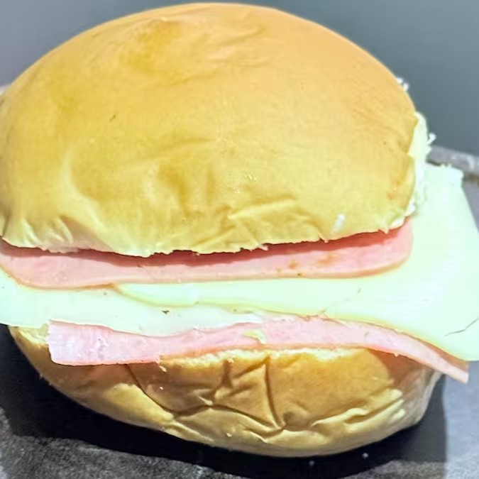 Pão, 2 Fatias de Presunto, 3 Fatias de Mussarela e um Ovo.