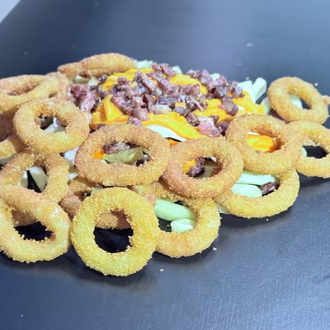 Porção Onions + Fritas Cheddar E Bacon | 700g