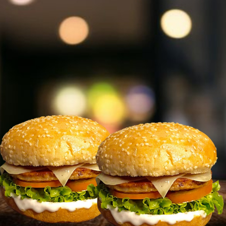 Levo dois pelo preço de 1(um) Lanche Cheesemburger Delicioso hambúrguer de carne bovina, queijo muçarela, alface, tomate, molho de alho da casa.