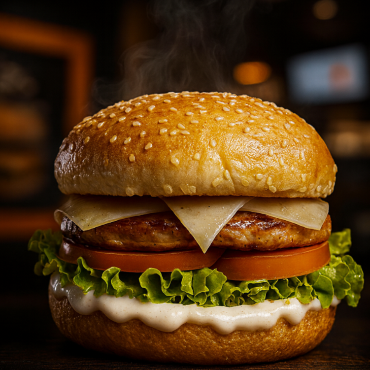 Apresentamos o Cheeseburger: um clássico irresistível com pão, hambúrguer suculento de 60g, queijo muçarela derretido, alface crocante, tomate fresco e nossa especial maionese de alho