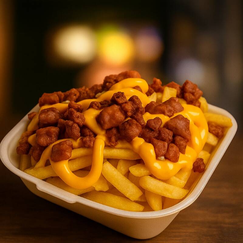 Deliciosas fritas cobertas com muito cheddar cremoso e bacon crocante. Uma combinação perfeita que vai te deixar com água na boca.