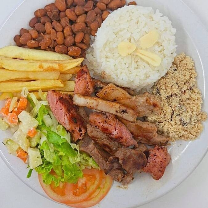 Deliciosa Marmita com carnes passadas NA CHAPA 500g que acompanha pernil, contrafilé e linguiça de pernil. Carnes sempre bem passadas e temperadas com molho de alho e sal. Acompanhamentos arroz, feijão, farofa crocante de cebola, batata frita e maionese.