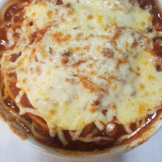 Spaguette molho a bolonhesa bacon gratinado ao forno,