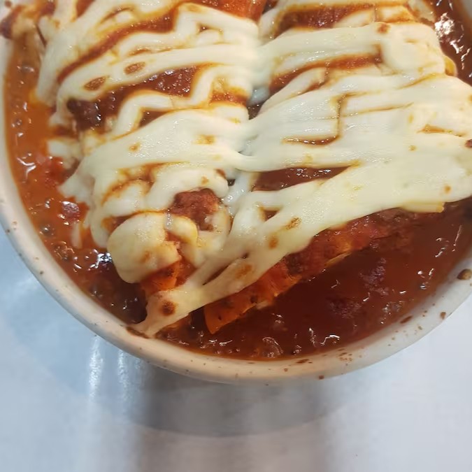 Canelone de frango abolonhesa com requeijao cremoso