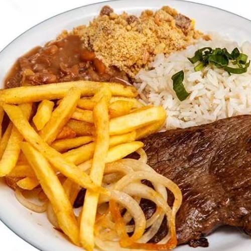 ARROZ,FEIJÃO COMUM,FRITAS A PALITO,SALADA,BIFE DE BOI