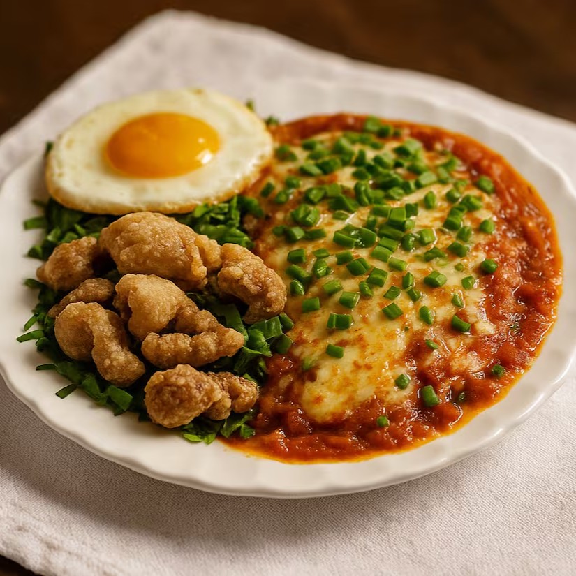 Uma combinação surpreendente que agrada todos os paladares! O clássico feijão tropeiro, se encontra com o espaguete ao molho caseiro, preparado com temperos frescos e muito carinho. Uma refeição completa, cheia de sabor, que une o melhor da culinária mineira com o toque especial da massa!