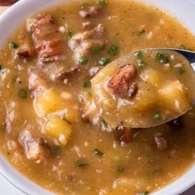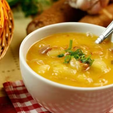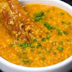 Caldo de Canjiquinha, bem temperado e servido quentinho em 500ml de pura tradição. E pra completar, vai acompanhado de torresmo crocante, douradinho na medida certa. Perfeito pra matar a fome com muito sabor!
