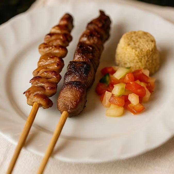 4 Espetos de Sua Escolha! Acompanhados por Vinagretes e Farofa e um Refrigerante gelado e saboroso