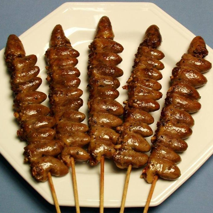 Coraçãozinho de frango. Entre 8 e 10 unidades podendo variar de acordo com o tamanho dos corações.