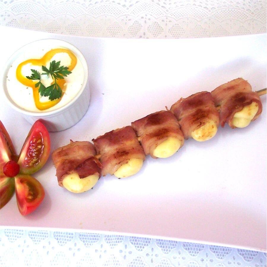 Mussarela envolvida no bacon com toque à parmegiana