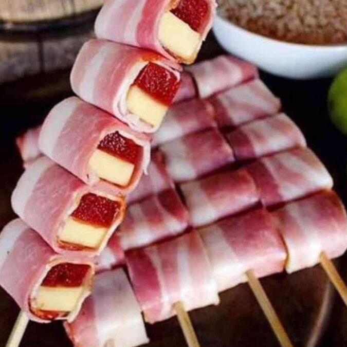 Queijo e goiabada envolvidos no Bacon. Sabor Agridoce, Simplesmente o melhor!!