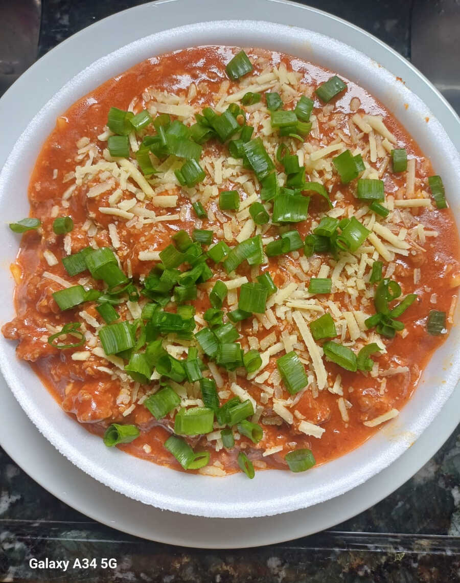 Spaguetti A Bolonhesa Com Queijo Ralado Na Hora E Cebolinha