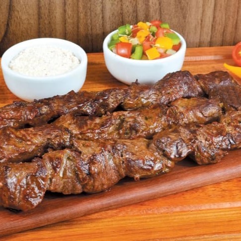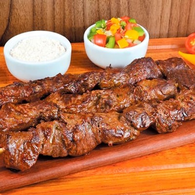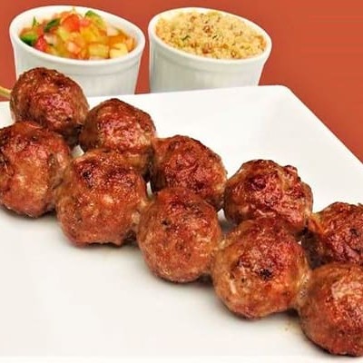 No combo vem 5 espetos, sendo: 1 un. Espetinho de boi; 1 un. Medalhão de frango; 1 un. Queijo coalho; 1 un. Almôndega recheada com mussarela; 1 un. Aipim com alho poró.
