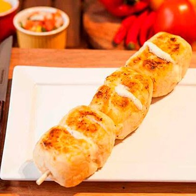 Espeto De Aipim Com Alho Poró E Queijo Provolone