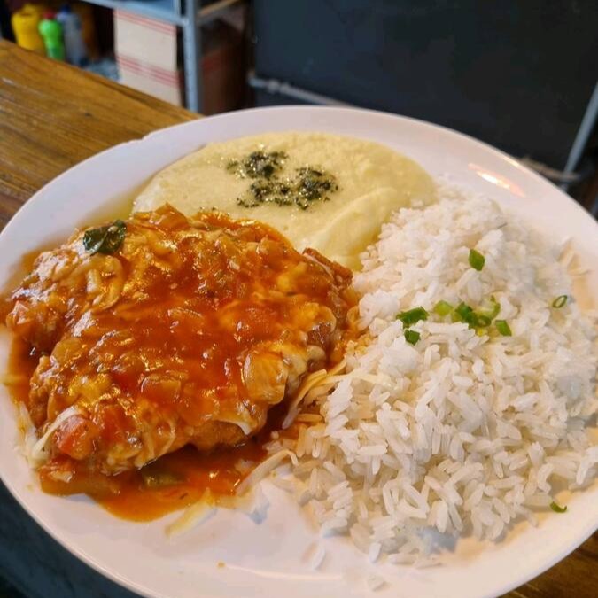 Delicioso parmegiana finalizado com molho de tomate caseiro feito na brasa e queijo mussarela. Acompanha arroz branquinho e soltinho e purê de batata da vovó. Se quiser deixar tudo completo pede nossa salada que vai à parte pra ficar ainda melhor!!! Está esperando o que? Faça logo seu pedido.