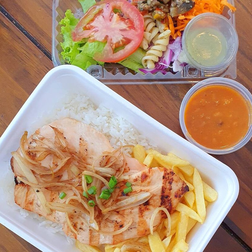 Delicioso filé de frango finalizado acompanhado de arroz branquinho e soltinho, feijão carioca refogado ao alho, batata frita e salada variada do Dia com molho da casa. Feijão e salada vão separados pra ficar ainda mais gostoso!! Está esperando o que? Peça já o seu!!