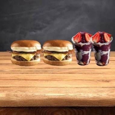 Para os amantes de Combo!! 2 Burguer Cremoso de Requeijão 4 Queijos acompanhado de Bbq, Cheddar , Bacon, Tomates frescos , Deliciosa Carne artesanal e Pão tostado na manteiga + 2 Açaís Cremoso c/ Morango e Leite condensado 500ml