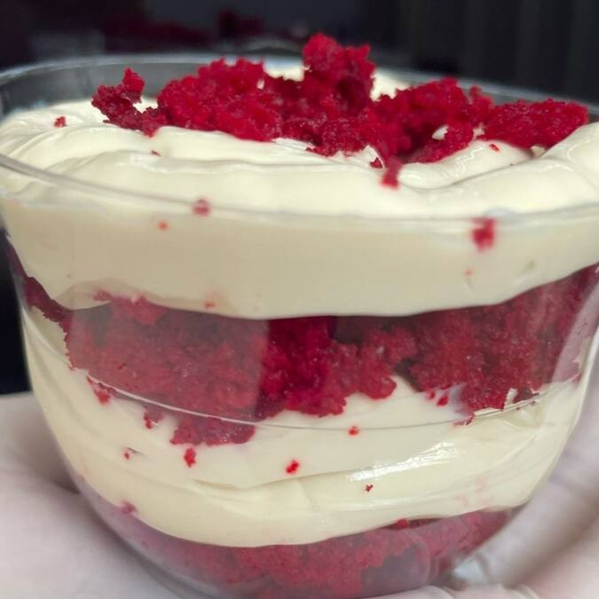 Rocambole de Doce de Leite de 100-120g e Bolo no pote red velvet 140g, ambos possuem uma massa fofinha feita com farinha de amêndoas!