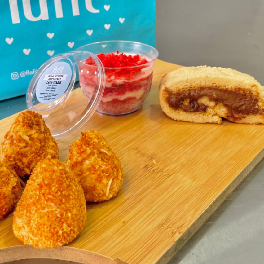 1 potinho red velvet low carb,1 rocambole de doce de leite low carb, 10 coxinhas proteicas e low carb congeladas.um combo perfeito para quem quer saborear doce e salgado sem sair da dieta.Produtos sem açúcar, sem lactose e low carb,feitos com ingredientes selecionados e pensados para quem busca uma alimentação mais equilibrada. As coxinhas são enviadas congeladas, prontas para assar em casa