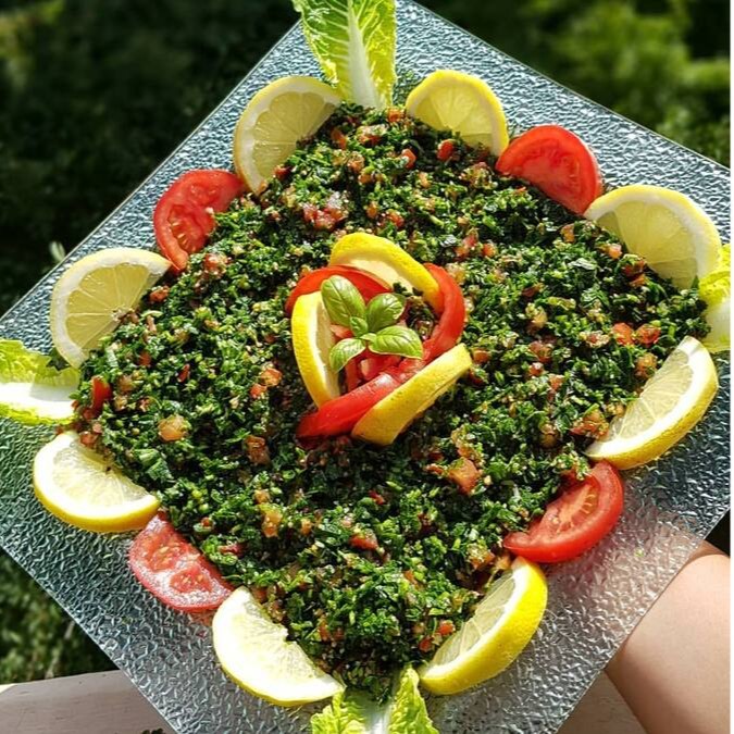 Salada fresca de trigo para quibe com tomate, salsa , temperada com sal e limão.