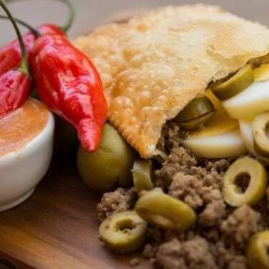 Aprecie o nosso 'Árabe', um autêntico pastelão de origem oriental. Este prato é generosamente recheado com a mais suculenta carne moída, harmonizada perfeitamente ao sabor levemente adocicado da cebola, e enriquecido com azeitonas, adicionando um toque mediterrâneo. Este pastelão é uma verdadeira explosão de sabores que irá transportá-lo diretamente para as exóticas e palatáveis cozinhas árabes. Um deleite para os apreciadores de uma boa culinária.
