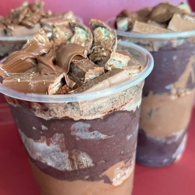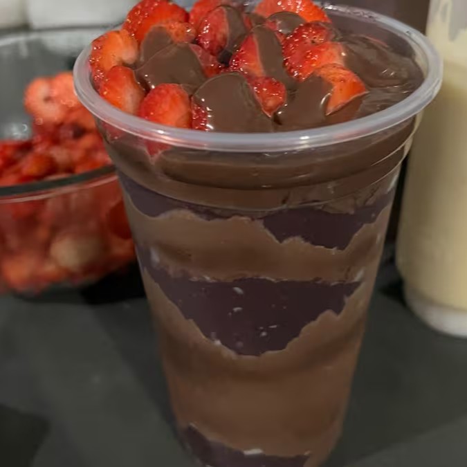Delicioso copão de 770ml Açaí trufado com muito chocolate chocolate e morango.