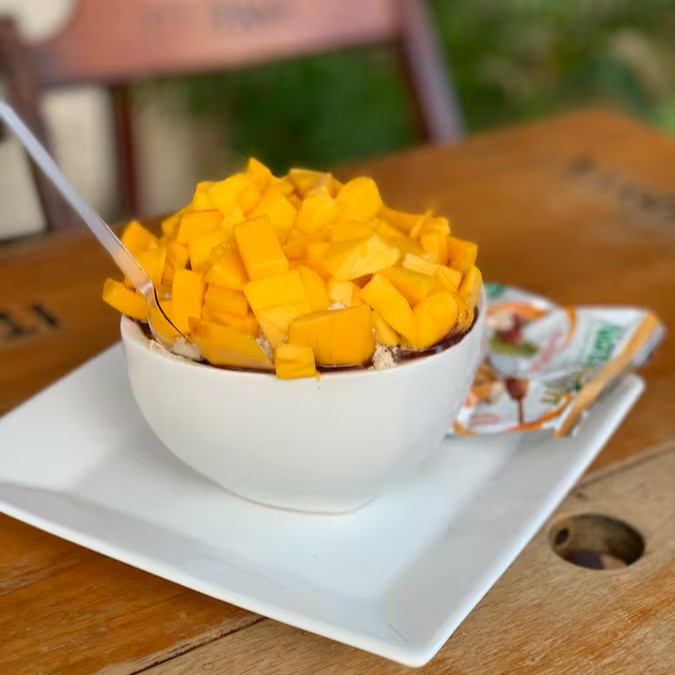 Acai cremoso + manga fresquinha + leite Ninho + condesado .