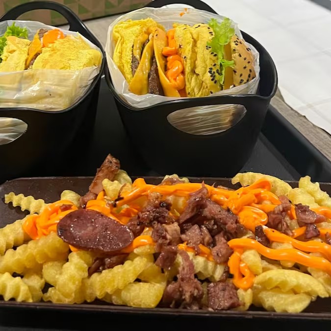 Este 'Combo Casal + Açaí + Mate Couro' é a opção perfeita para compartilhar. Composto por dois suculentos 'X-Tudo' com um toque cremoso de cream cheese, e 200gr de batatas fritas crocantes, generosamente cobertas com cheddar derretido e bacon crocante. Este combo se completa com um refrescante Mate Couro de 1l, para saciar sua sede, e um cremoso e delicioso açaí de 200ml, ideal para finalizar a refeição com um toque doce. Este combo promete deixar qualquer casal plenamente satisfeito.