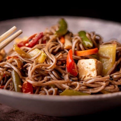 Delicioso yakisoba com Legumes e verduras(cenoura, pimentão , tomate, repolho branco, cebola) cuidadosamente picados, carne macia filé frango grelhado picadinho, macarrão, molho shoyu e toque especial da mineira.