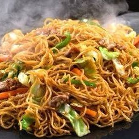 2 macarrão na chapa 450g cada, feito com pernil, linguiça calabresa, pimentão, cebola,milho, cenoura ralada, molho shoyu.