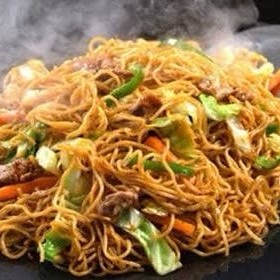 Marmita acompanha: delicioso Espaguete feito na chapa, contém linguiça calabresa , pernil picadinho, cenoura ralada, pimentão, tomate, cebola, milho e molho Shoyo.