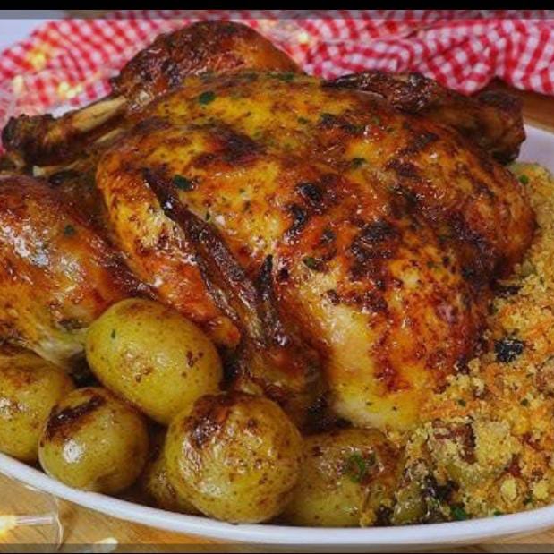 Frango Assado ,Batata e Farofa
