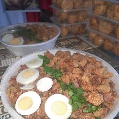 Marmitex grande de tropeiro. Vem super recheado com nossa linguiça caseira de cebolinha, torresmo crocante frito no Dia e ovos cozidos. (Aprx. 500g).