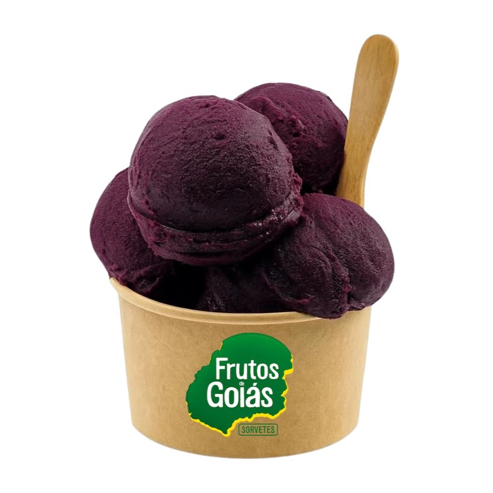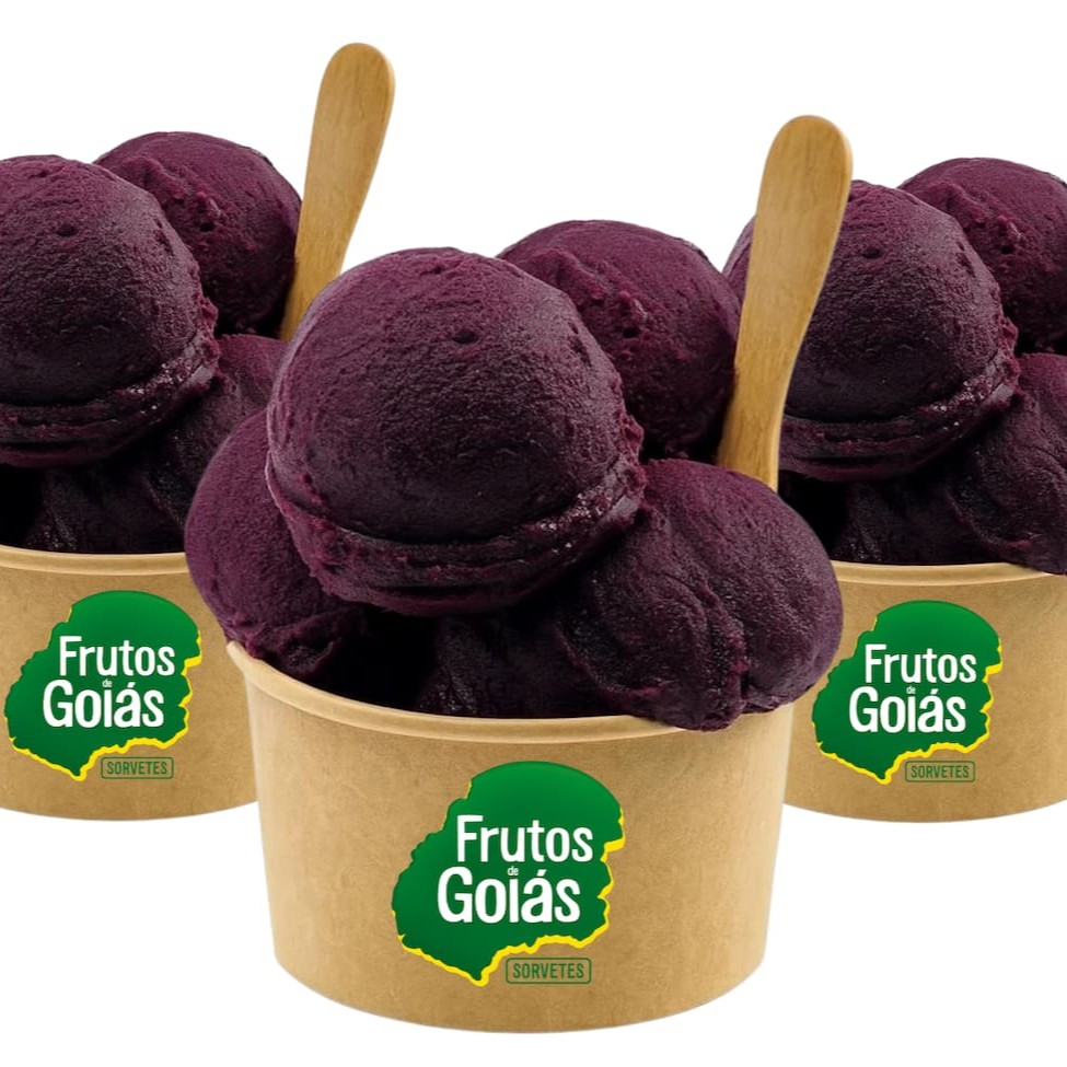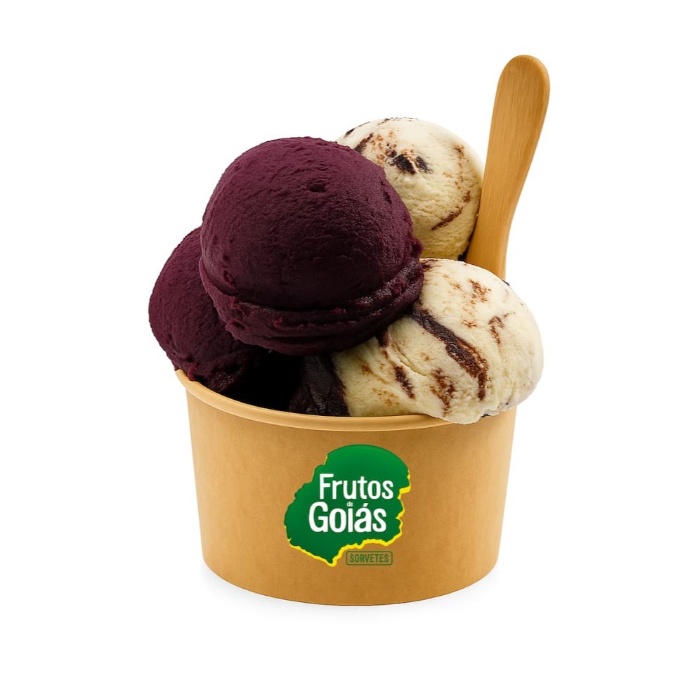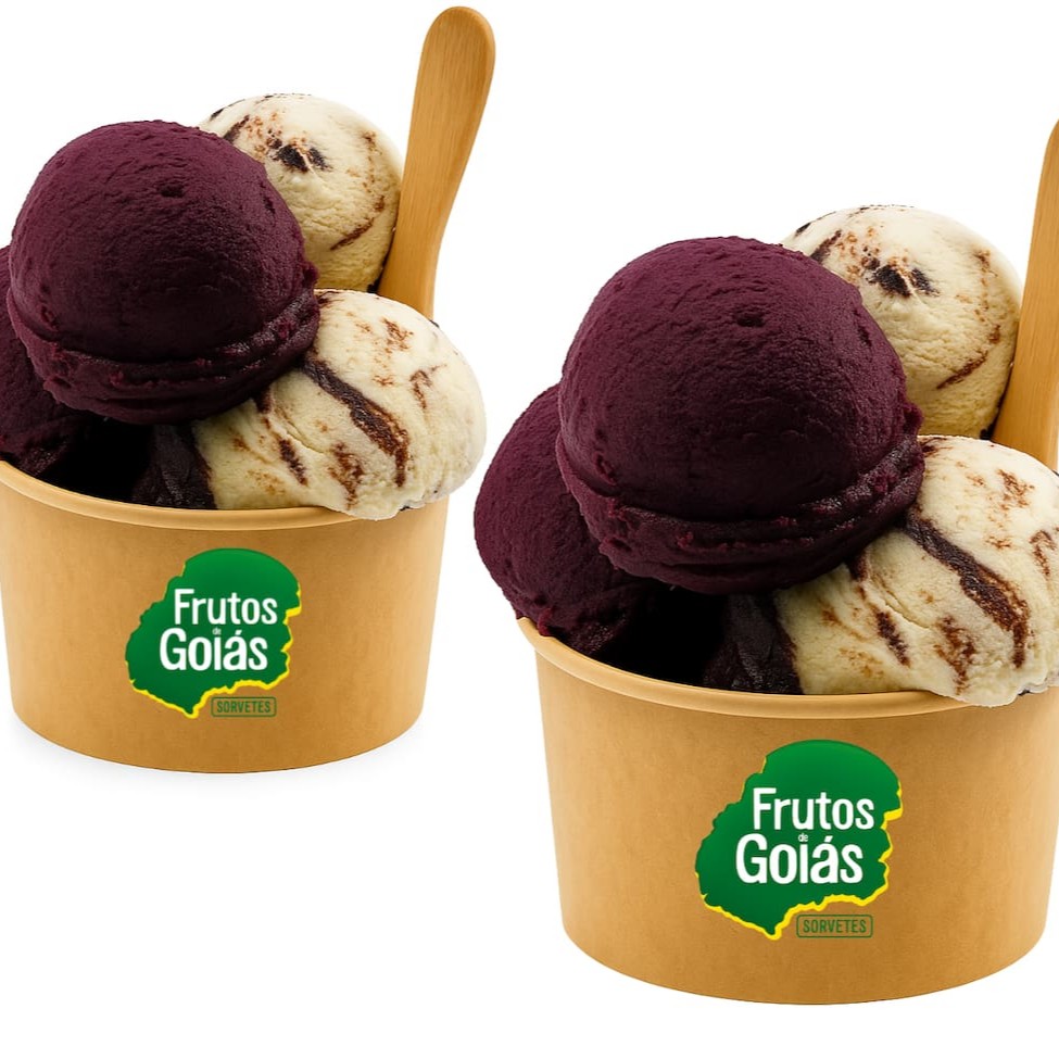 A combinação perfeita do açaí frutos de goiás com sorvete no pote de 360 ml com até dois complementos grátis adicionados ao pote de açaí.