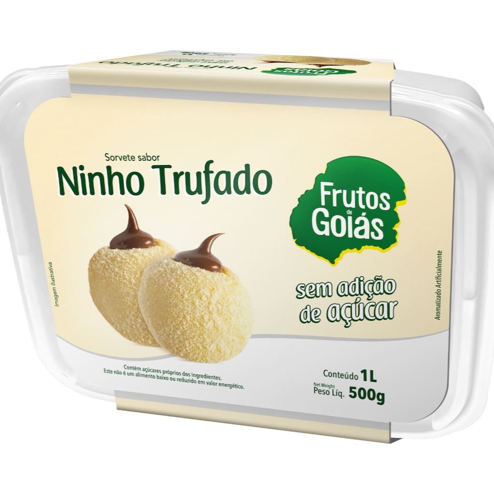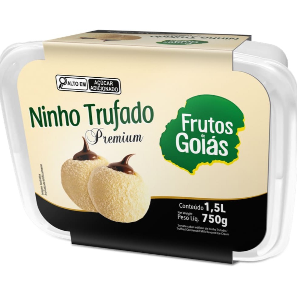 Seu delicioso sorvete frutos de goiás na opção a granel no pote de 480 ml e com complementos adicionais embalados separadamente.