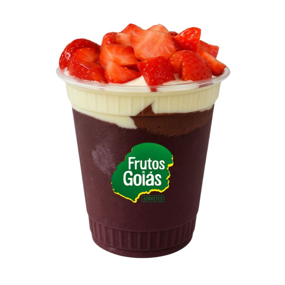 Seu açaí Frutos de Goiás em uma irresistível versão morango Nutella, finalizado com chantilly, proporcionando uma incrível cremosidade ao seu produto