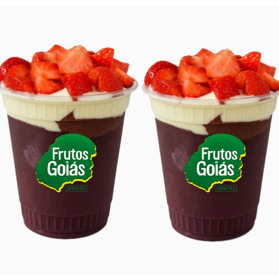 Seu delicioso açaí frutos de goiás em dose dupla com mais 2 complementos grátis adicionados a cada pote de açaí.