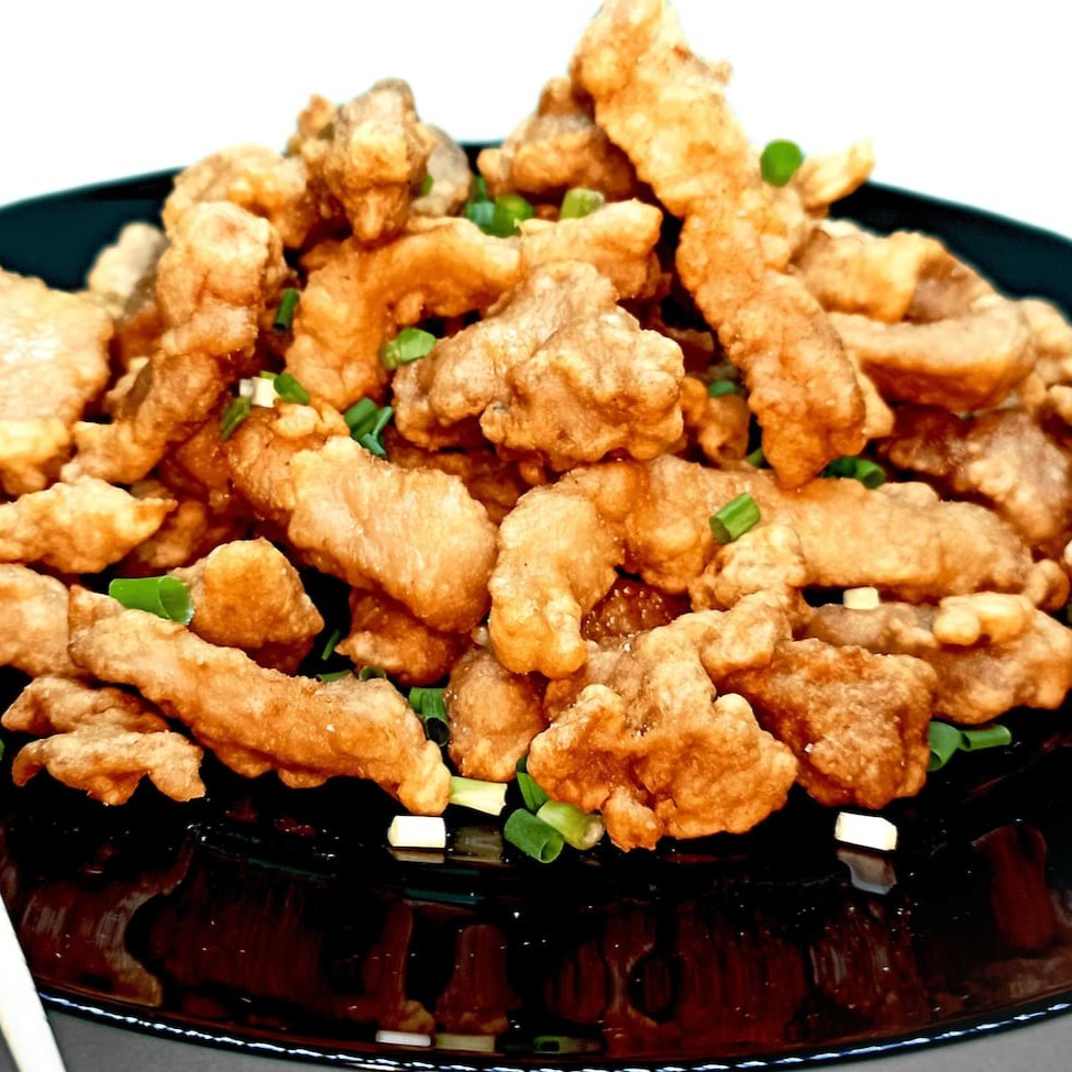 Apresentamos a nossa suntuosa 'Costelinha', uma estrela gloriosa na nossa categoria de 'Carnes'. Esta é uma requintada criação culinária composta por suculentos pedaços de carne suína, cuidadosamente fritos até alcançar uma crocância sublime. A carne é delicadamente envolvida por uma massa levemente aerada, feita com ovos e maizena, e aprimorada com a adição dos nossos temperos secretos. O prato é generosamente regado com um molho irresistível, composto por shoyu de excelente qualidade e cebolinha fresca, proporcionando um contraste de sabores que é simplesmente inigualável. Esta é uma verdadeira celebração de sabores que promete encantar o seu paladar.