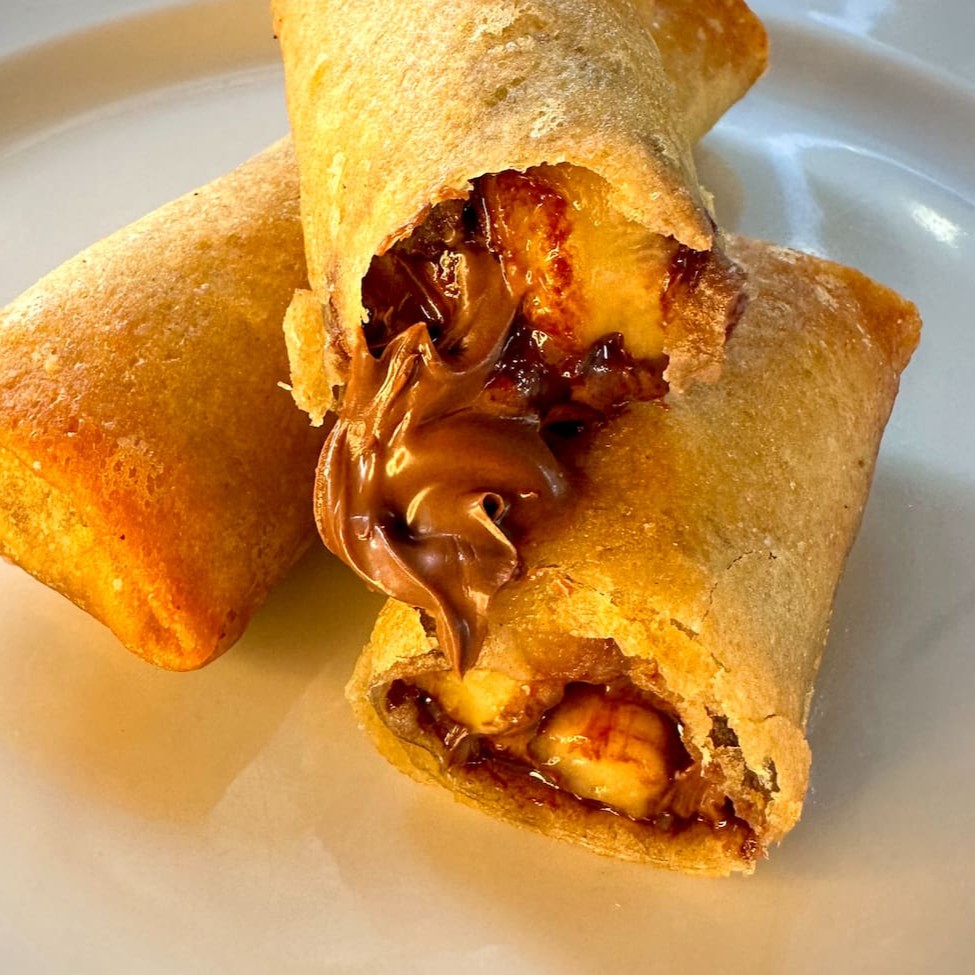 Adoce seu paladar com o nosso irresistível 'Rolinho de Nutella com Banana'. Esta sobremesa leva uma camadas de Nutella, harmoniosamente combinadas com fatias de bananas frescas e maduras. Uma tentação difícil de resistir, perfeita para finalizar sua refeição em grande estilo.