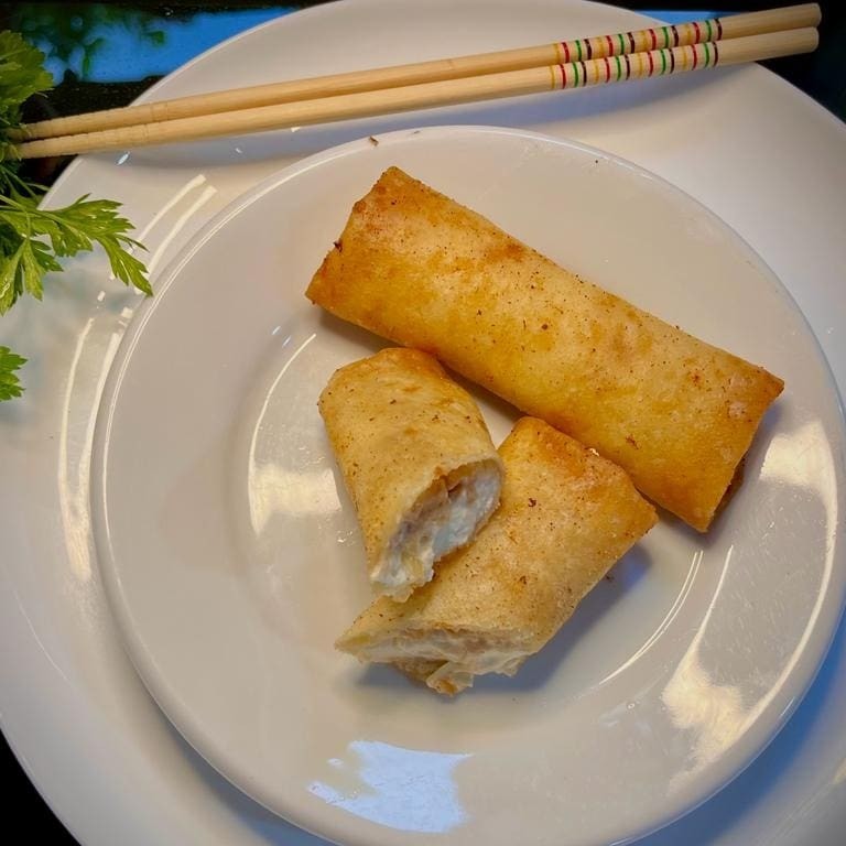 Apresentando o 'Rolinho de Alho Poró', uma entrada sofisticada e elegante. Este prato é composto por duas unidades de rolinhos cuidadosamente preparados. A massa, fina e delicada, é criada à base de farinha de trigo premium e água purificada. O recheio é o grande protagonista desta experiência culinária, com o aromático alho poró combinando perfeitamente com o suave e cremoso cream cheese. Uma verdadeira obra-prima gastronômica que promete aguçar seus sentidos. Uma opção irresistível para começar sua refeição!