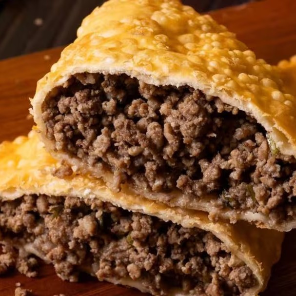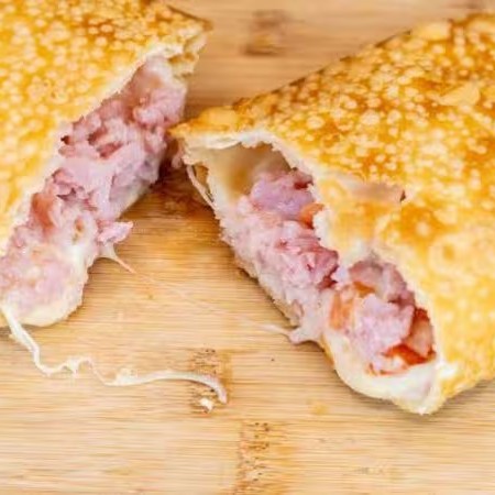 Experimente o pastel de carne com bacon, uma explosão de sabores intensos e defumados que vai conquistar seu paladar.