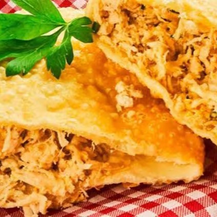 Pastel recheado com frango suculento, uma escolha leve e saborosa para qualquer momento do Dia.