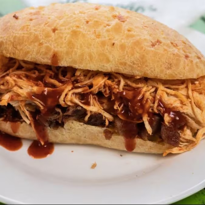 Pão de queijo com pernil, uma delícia irresistível que combina a maciez do pão de queijo com o sabor marcante do pernil.