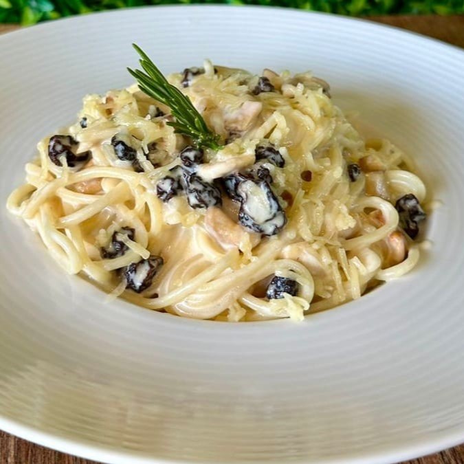 Espaguete Ao Creme De Queijo, Passas E Nozes