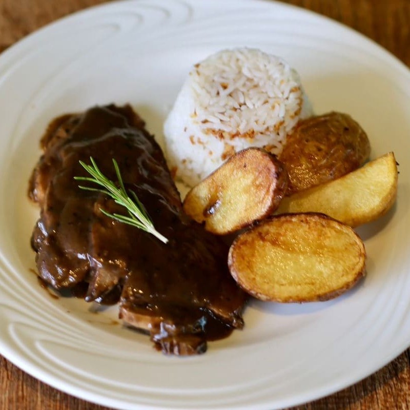 Lagarto Ao Molho Madeira, Arroz E Batatas Rústicas