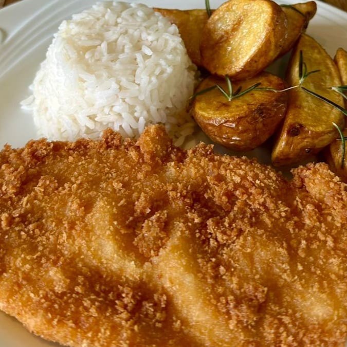 Frango A Milanesa Com Batatas Rusticas